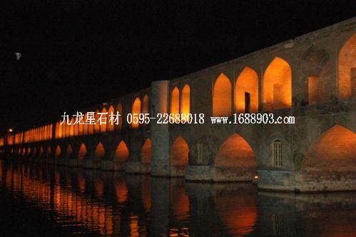 赫久古橋是伊朗最著名的橋梁之一,阿拔斯二世在1650年一座更古老的橋梁基礎(chǔ)上建造的,它共有23個拱形結(jié)構(gòu),總長度344英尺,45英尺寬。
