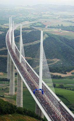 如果擔(dān)心高度過高,你可能不會選擇穿越法國南部的米約大橋,這座大橋跨越塔恩河谷至米約地區(qū),是當今世界上最高的車載交通大橋,其最高點距離地面1125英尺。