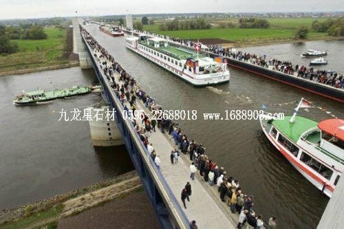 橋不僅用于居民行走,甚至還可以行船運輸,這就是德國巨大的馬格德堡水橋,它位于易北河-哈弗爾河和米特蘭爾運河之間。這座1公里長的橋中橋是于2003年開通投入使用的。共用了6年時間進行建造,花費了5億歐元。