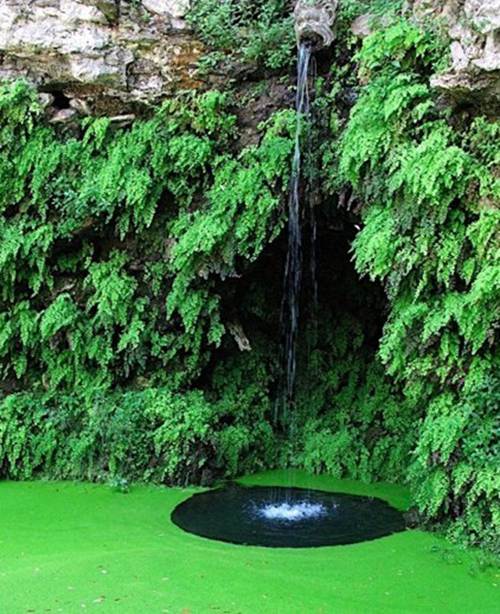 莊園景觀處處充滿特色,而水景則是園中最為突出的景觀。園中水景動(dòng)靜結(jié)合,有規(guī)模宏大的大型噴泉雕塑,也有細(xì)細(xì)流水的流水階梯和小水渠。由第四層臺(tái)地洞府作為全園的水源,連接各個(gè)水景,再以底層的方形水池噴泉的形式作為高潮而結(jié)束。一些如流水階梯、底層水池噴泉和洞府等的美麗景觀不用多說,想說的是二層臺(tái)地上的長條形水渠。這水渠位于中軸線上,長條形大理石中間開縫裝有平靜的流水,這樣的設(shè)計(jì)讓我聯(lián)想到廣東的祠堂中也有類似的盛水物,下雨后積水,配上青苔和祠堂的柏樹,總給人幽靜、舒適感,在莊園這里也起到相同作用。樹蔭底下一切顯得和諧安靜,碰巧可能還會(huì)見到動(dòng)物在這里喝水,這樣也剛好給主人修心看書的環(huán)境。水渠同時(shí)也起到引導(dǎo)和指向作用,突出了巖壁的半圓噴泉。維尼奧拉對丘陵地帶變化豐富的地形進(jìn)行了靈活巧妙的利用,在三層平臺(tái)的圓形噴泉后,用一條華麗的鏈?zhǔn)剿荡┰骄G色坡地,使得漸行漸高的園林中軸終點(diǎn)落在了整個(gè)莊園的至高點(diǎn)上,并在此修筑亭臺(tái)方便從這兒俯瞰莊園全景。在這個(gè)新奇、精美、不斷變化的展現(xiàn)中,理水的高度技巧和精美的雕塑藝術(shù)完美的體現(xiàn)出巴洛克美感。